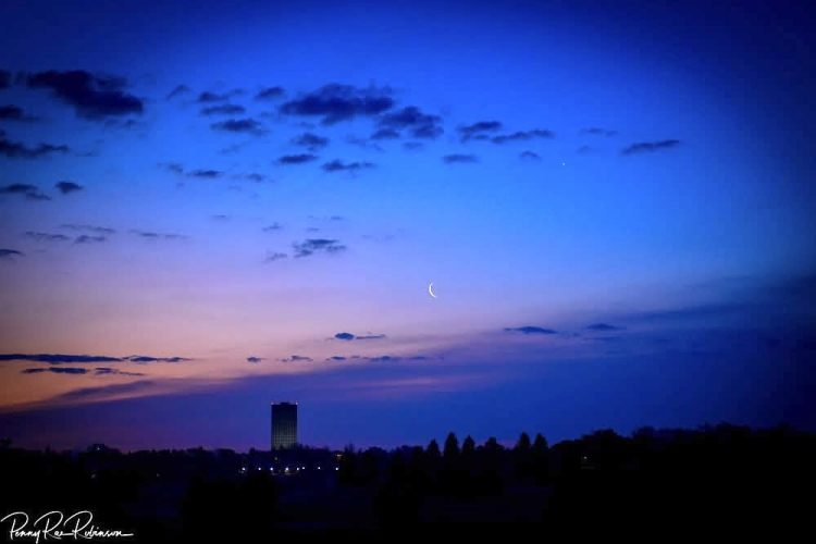 Venus, the rising crescent Moon and the North Dakota State Capitol building make up this triple conjunction this morning.