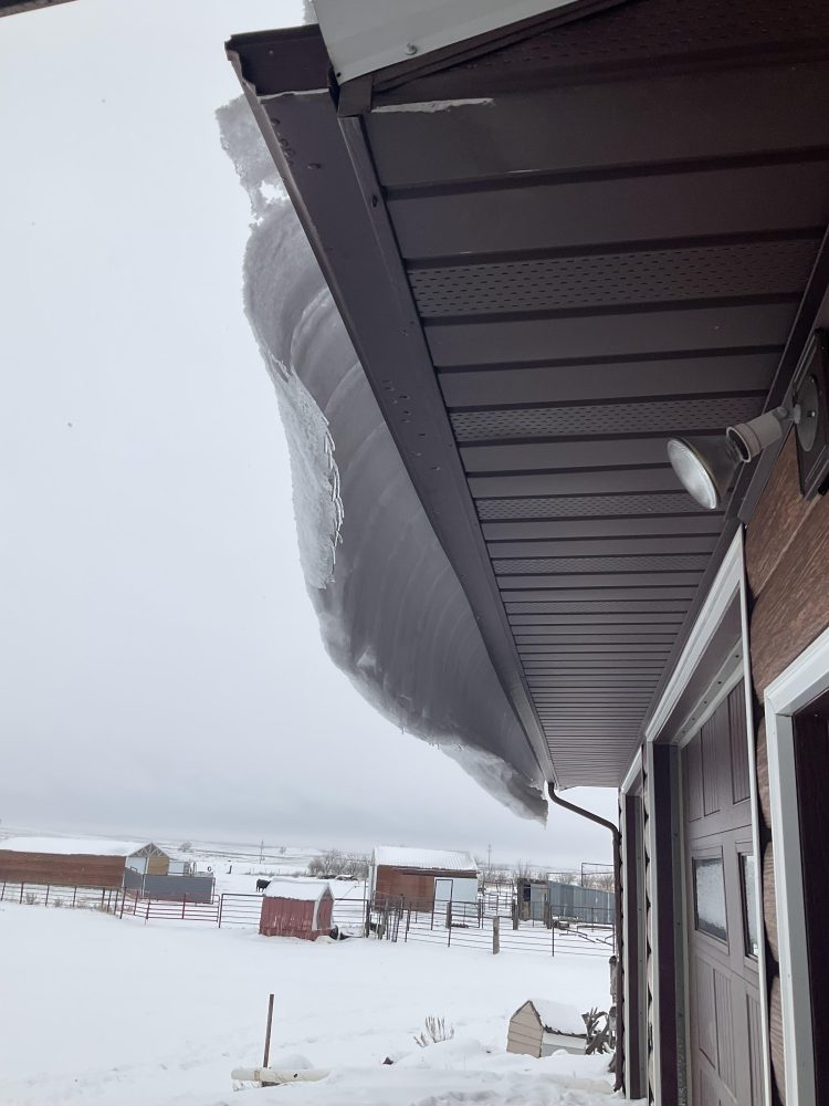 Wet snow sliding off garage. 6 inches here at Baker,MT