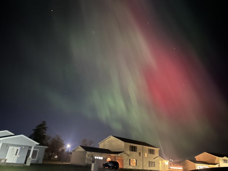 This was around 4:34 a.m. when I got home from work. It’s so beautiful and it’s dancing. Super visible to the naked eye.