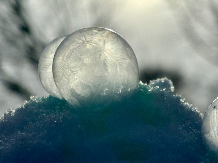 Blowing soap bubbles in January