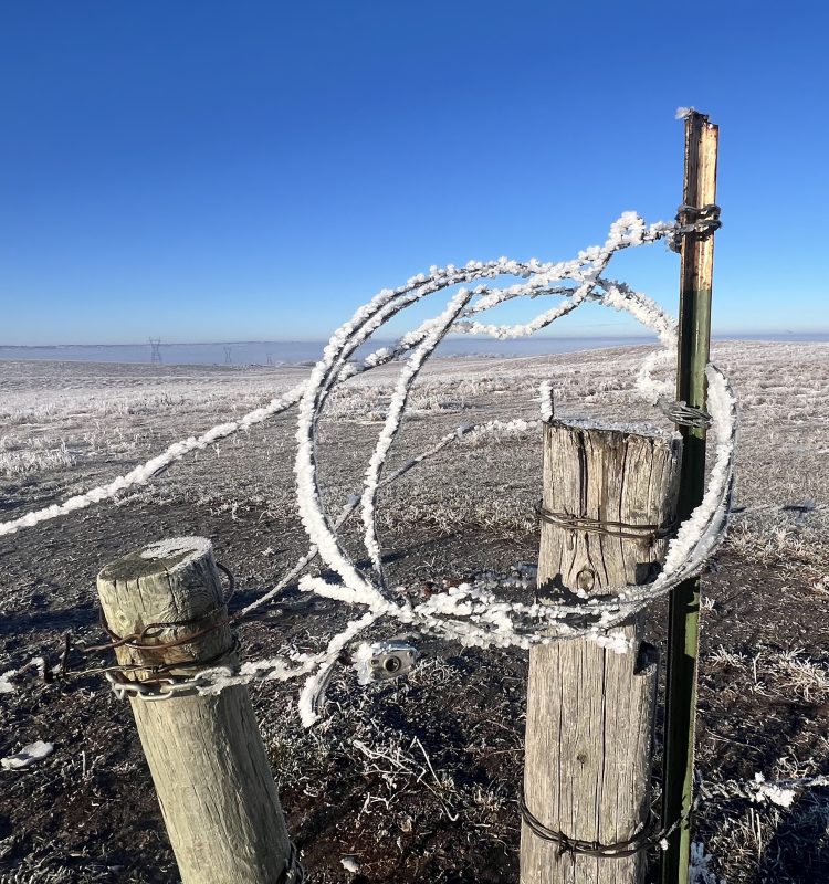 Frosted barbed wire.