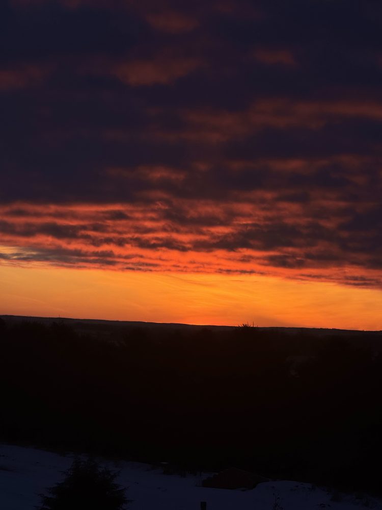 Sunset , Dickinson ND. Note the stop sign and street light visible.