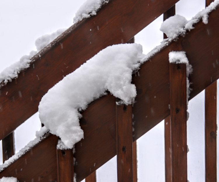 The heavy wet snow on Friday created this headless crawling monster on our deck railing.