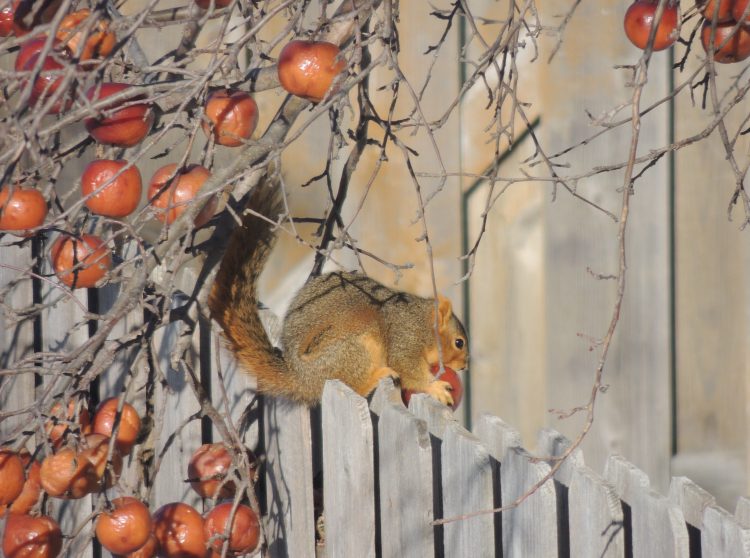 This squirrel was out on a warm, sunny Tuesday and munching on a left-over apple.