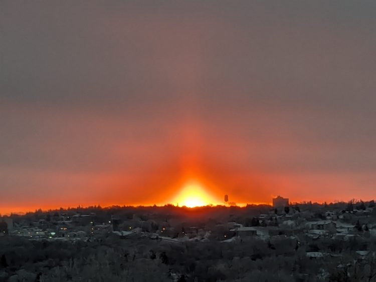 Friday’s Setting Sun Through the Snowfall