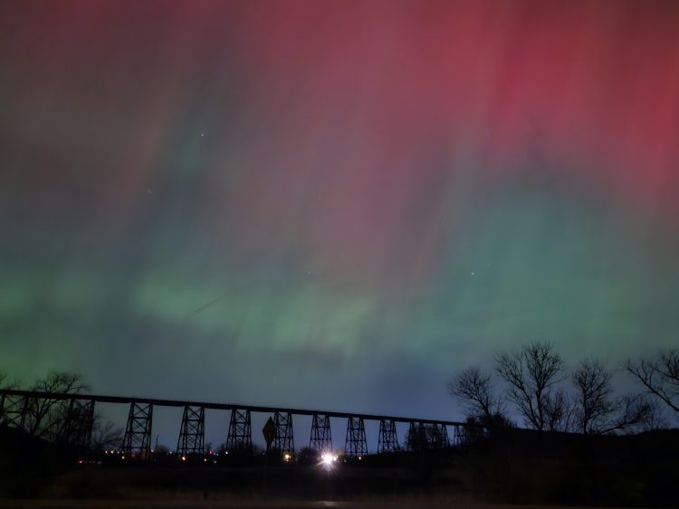 Ewe covered in snow behind windbreak and under a roof. Strong winds swirled the snow around and in the shelter