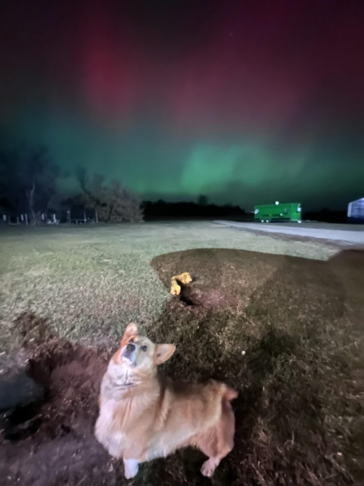 My dog name is Dunny and he is very very curious of what those weird lights in the sky and I don’t think he is a fan of them lol