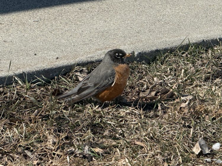 Here is a picture of the robin in front of Zion Lutheran Church in Kulm during the afternoon.