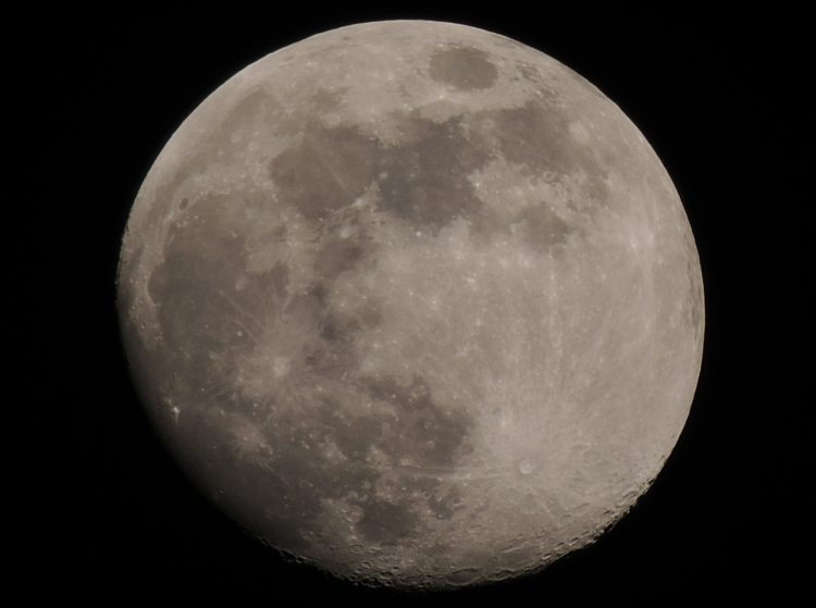 The forecast was predicting cloudy skies so this photo of the Snow Moon at nearly 100% full was taken before the clouds moved in.
