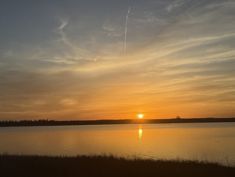 Here is a picture of the sunset with reflection from Flood Lake by HWY 13 near Kulm, ND.