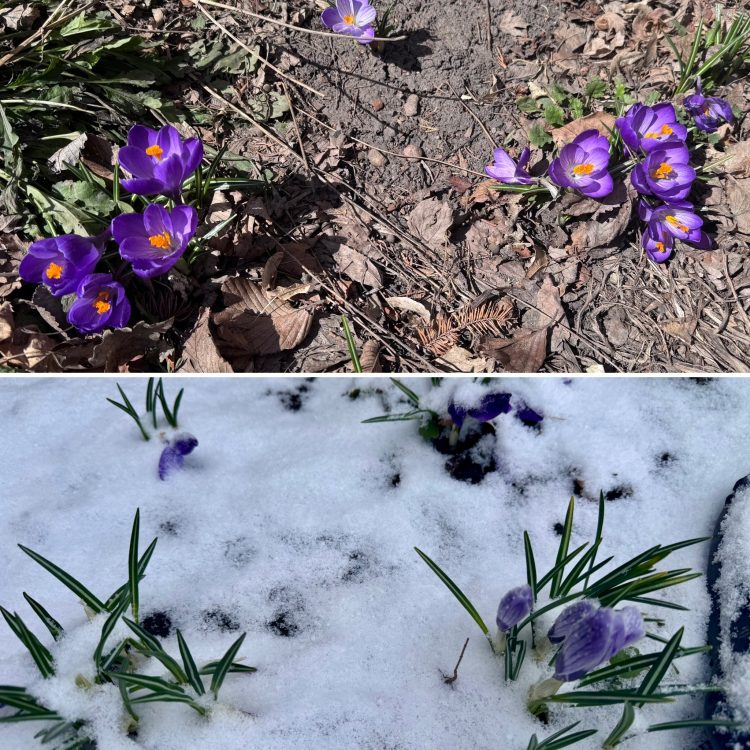 Crocus flowers in my garden on Tuesday vs. Wednesday